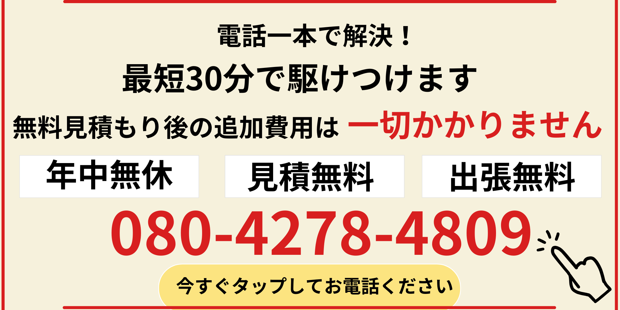 ④365日24時間対応、最短30分で駆けつけます